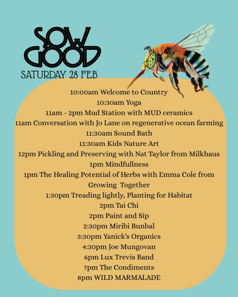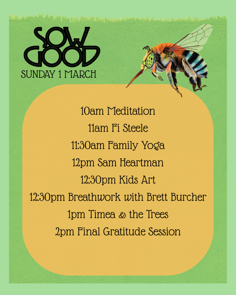 Sow Good is where good food, good people and good purpose collide. It’s a hands-on community event rooted in inclusion, sustainability and wellbeing—bringing people together to grow, learn, share and celebrate what it means to live well, connected to land, sea and community🌱